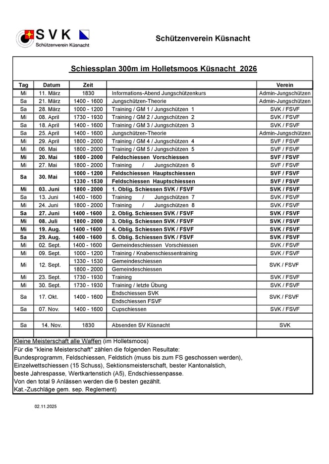 Schiessplan 2026